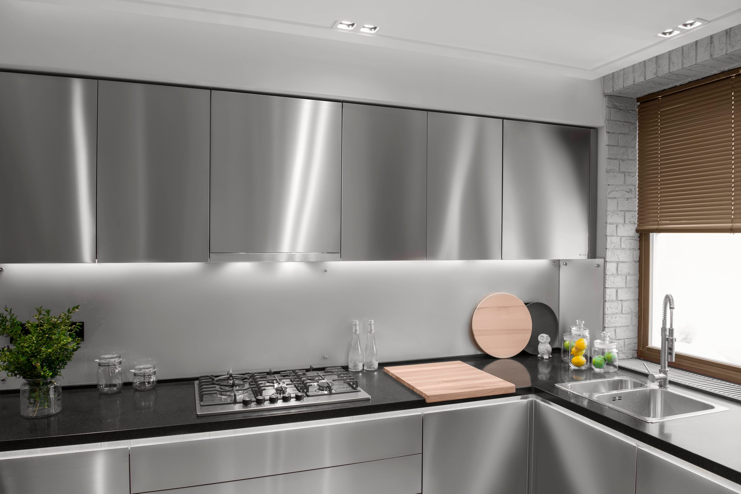 Панели обеспечивают как жёсткость и прочность конструкции, так и влагостойкость под длительным воздействием дождя, тумана и снега. На фасадах применяется нержавеющая сталь с поверхностью ANTI FINGER, то есть «анти-палец». На такой стали не остается ни малейших отпечатков, она идеальна в эксплуатации. Широкий диапазон стандартных размеров элементов низа и верха позволяет создать кухню для любого помещения.