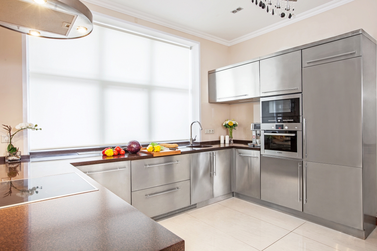 О материале. Из стали можно делать очень стильные, современные предметы мебели. Например, мебель для ванной или кухонные гарнитуры. Сталь смотрится благородно, чего не скажешь о ДСП и пластике, она экологична и очень долговечна. Кстати, профессионалы поварского дела предпочитают кухни именно из нержавеющей стали.